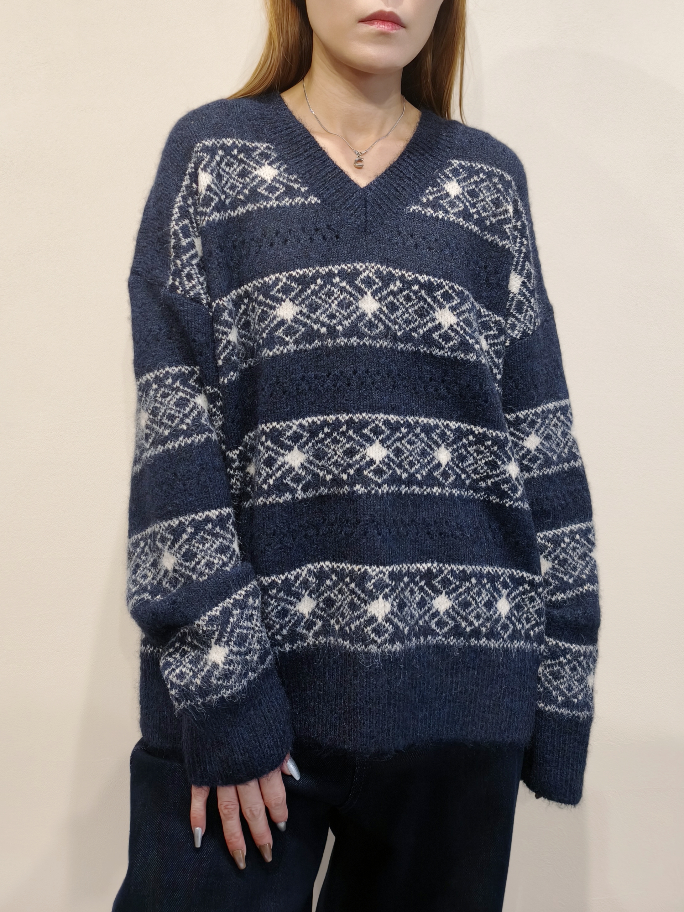 織花V領毛衣