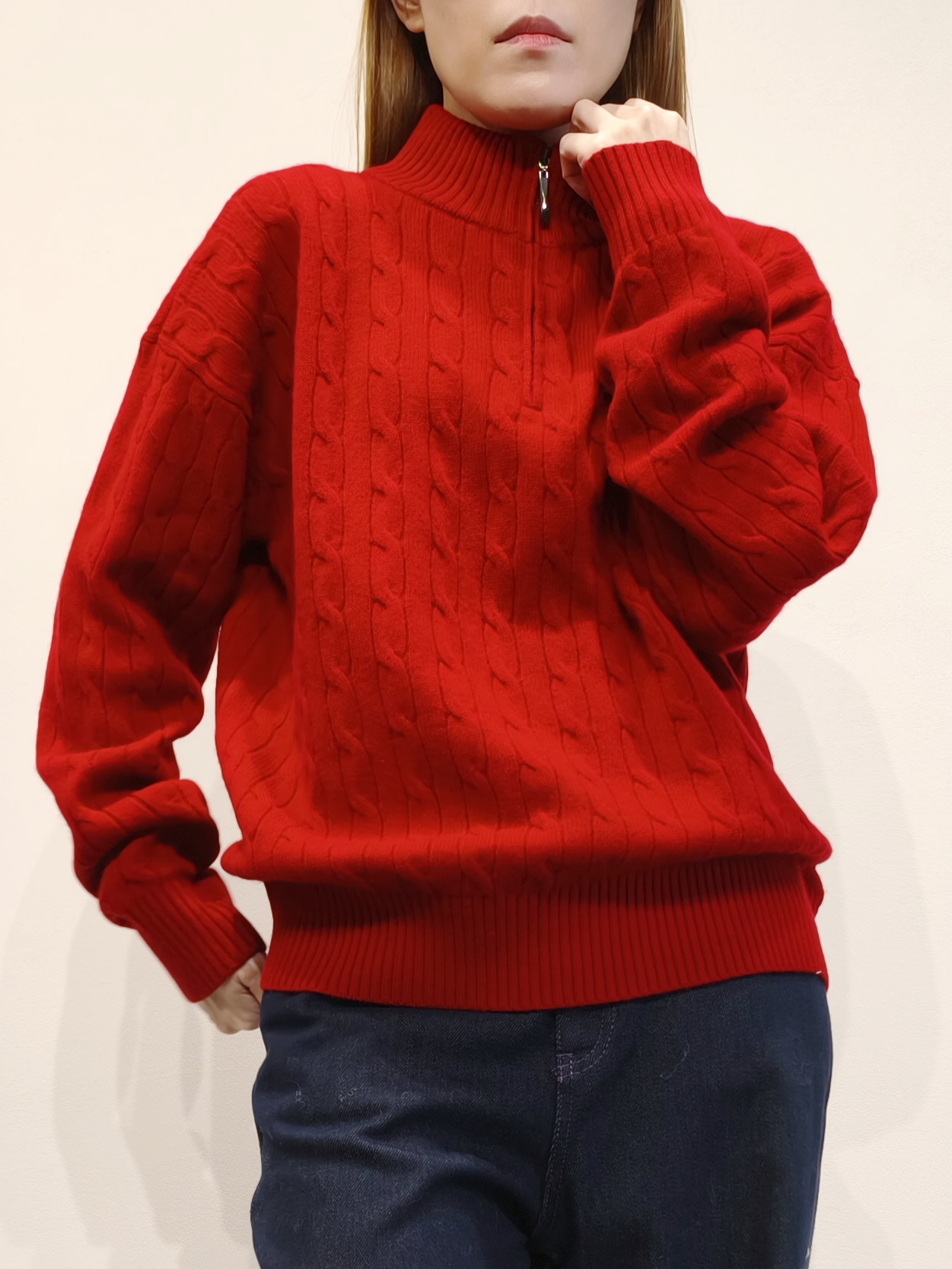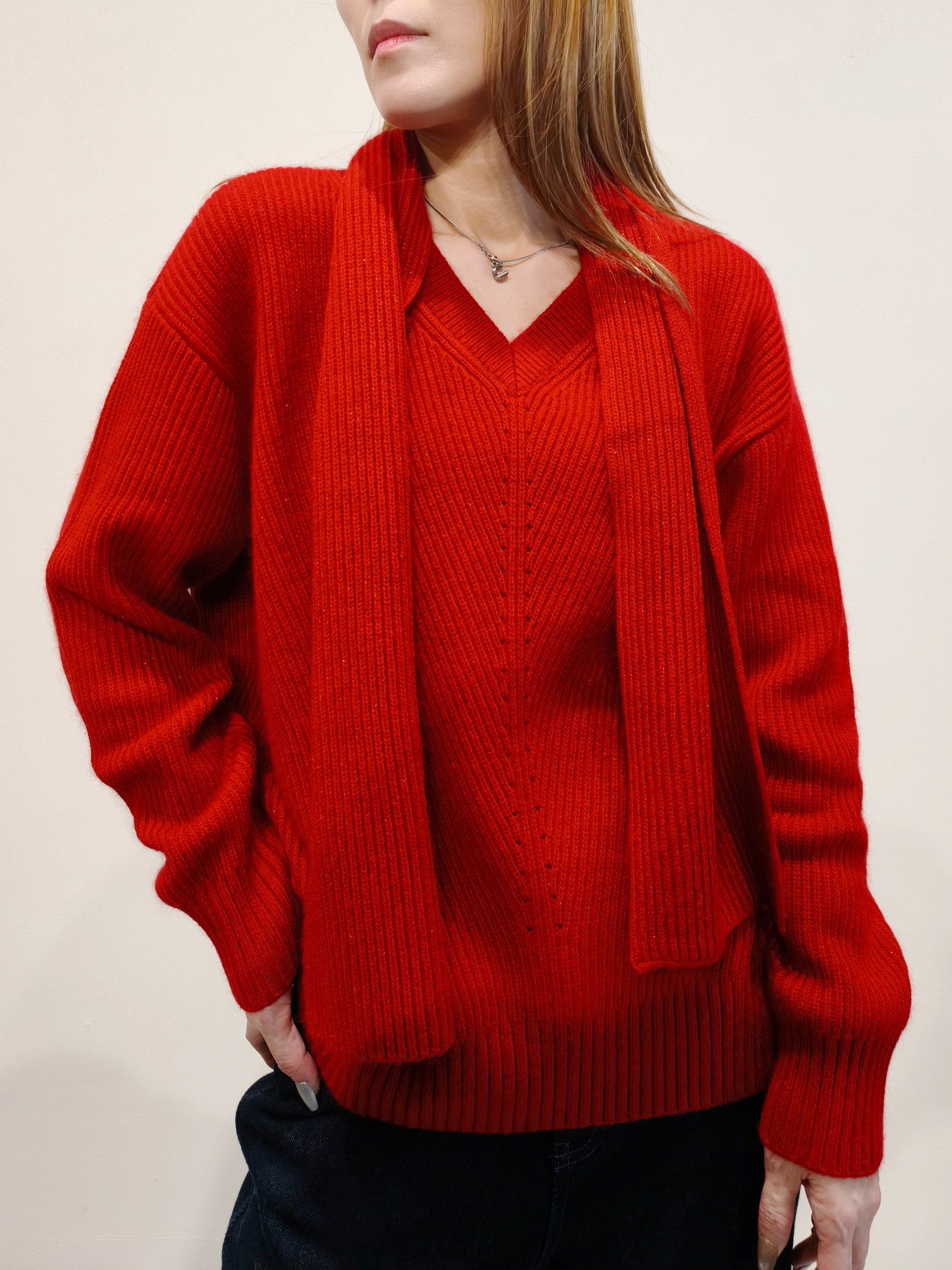 紅色V領針織連頸巾