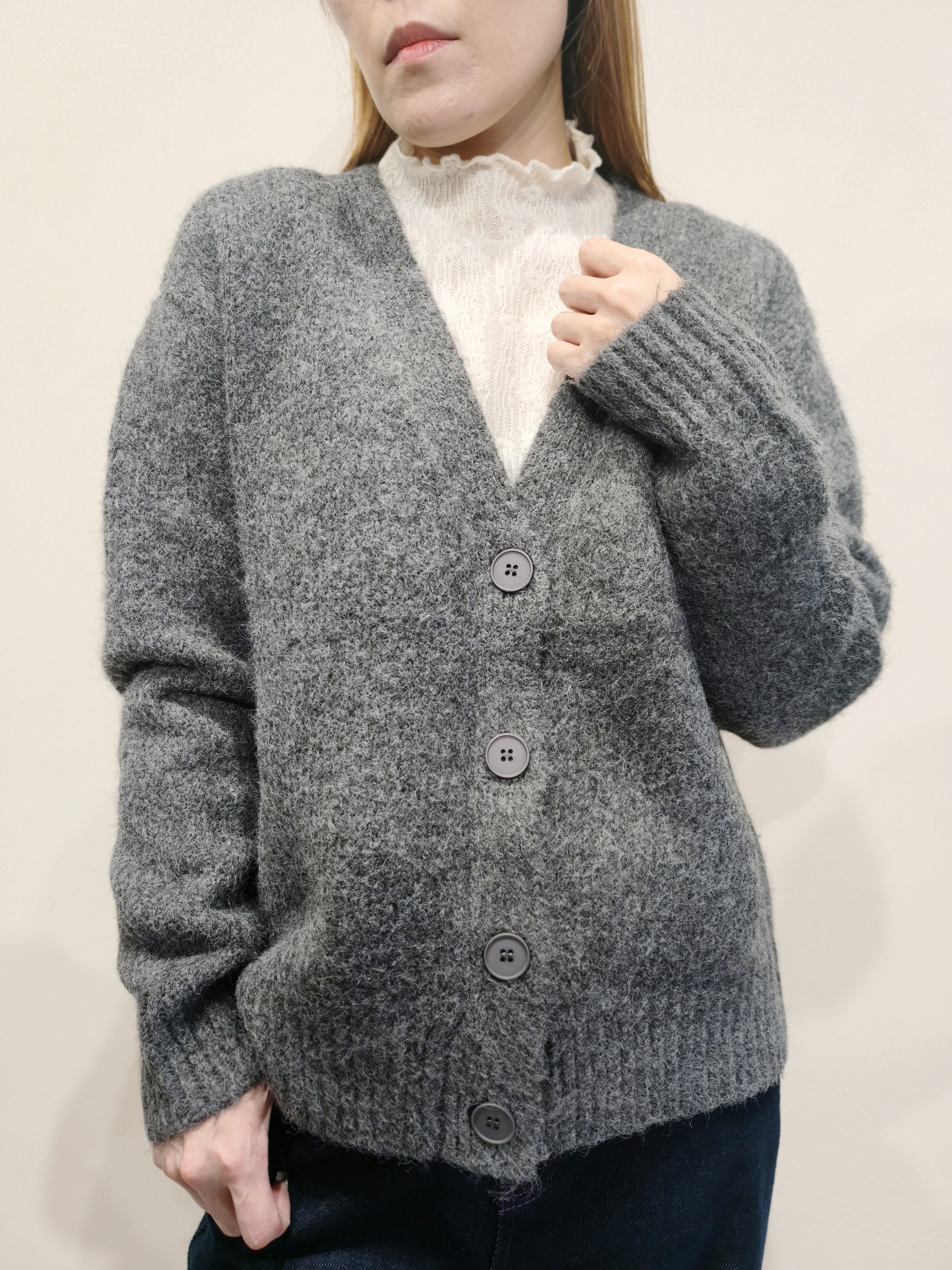 灰色大V領毛衣外套