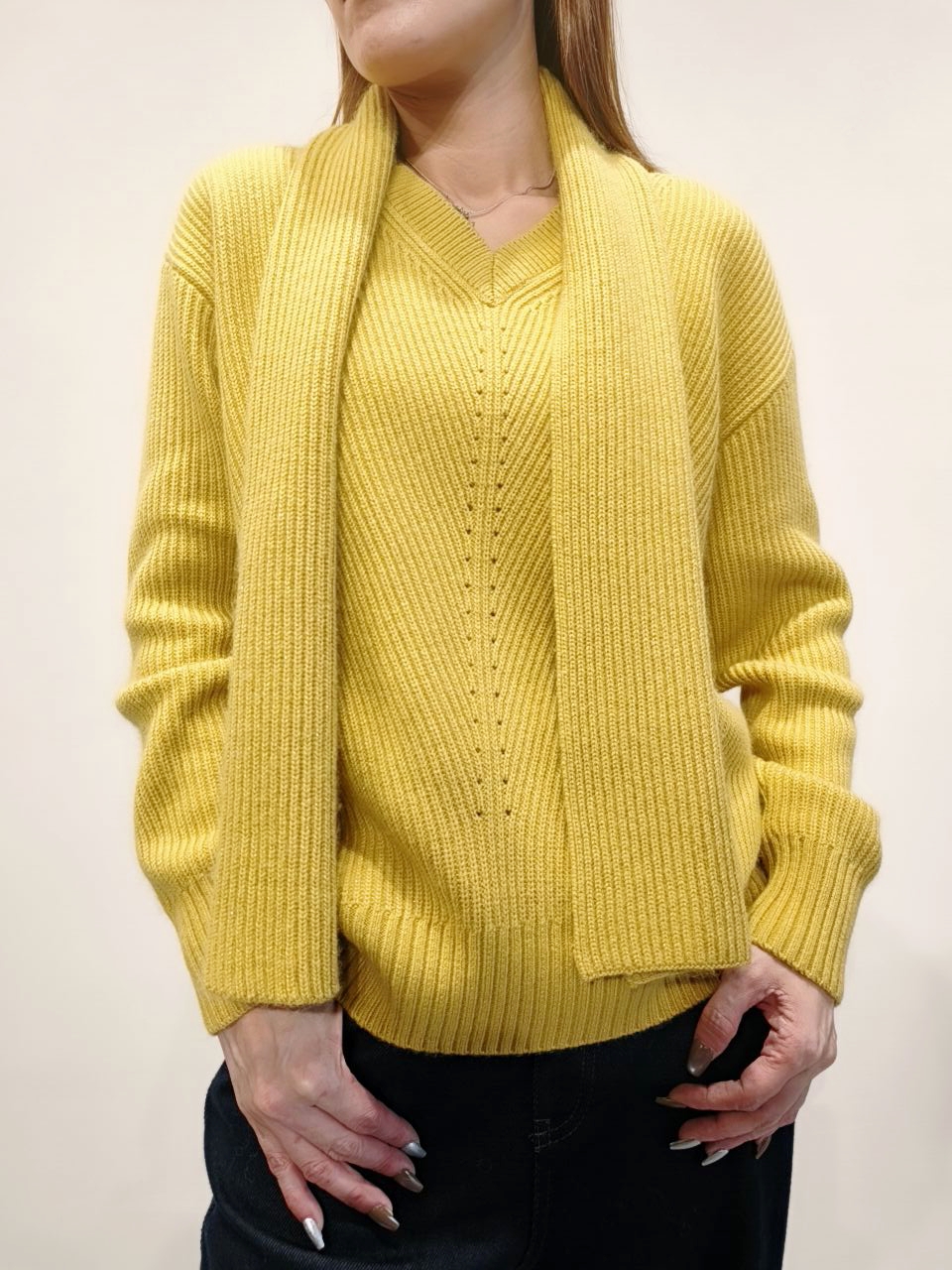 黃色V領針織連頸巾