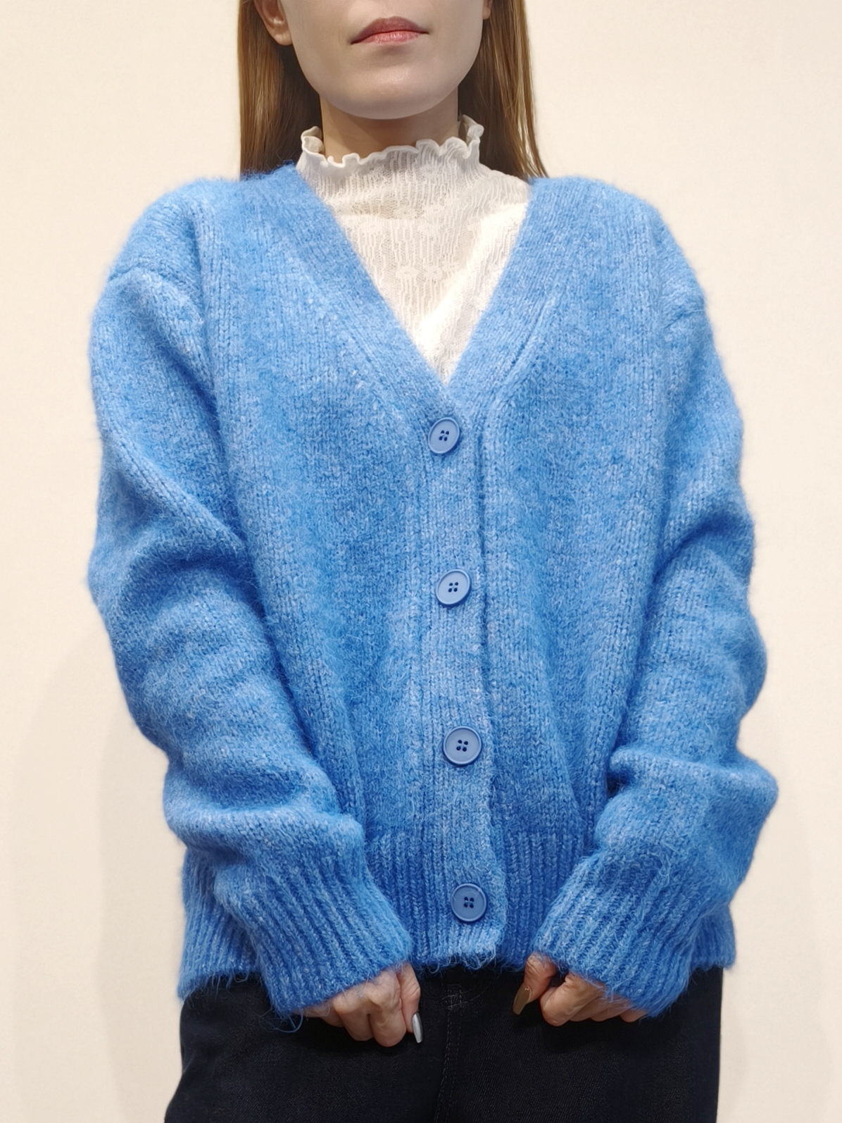 天藍色大V領毛衣外套