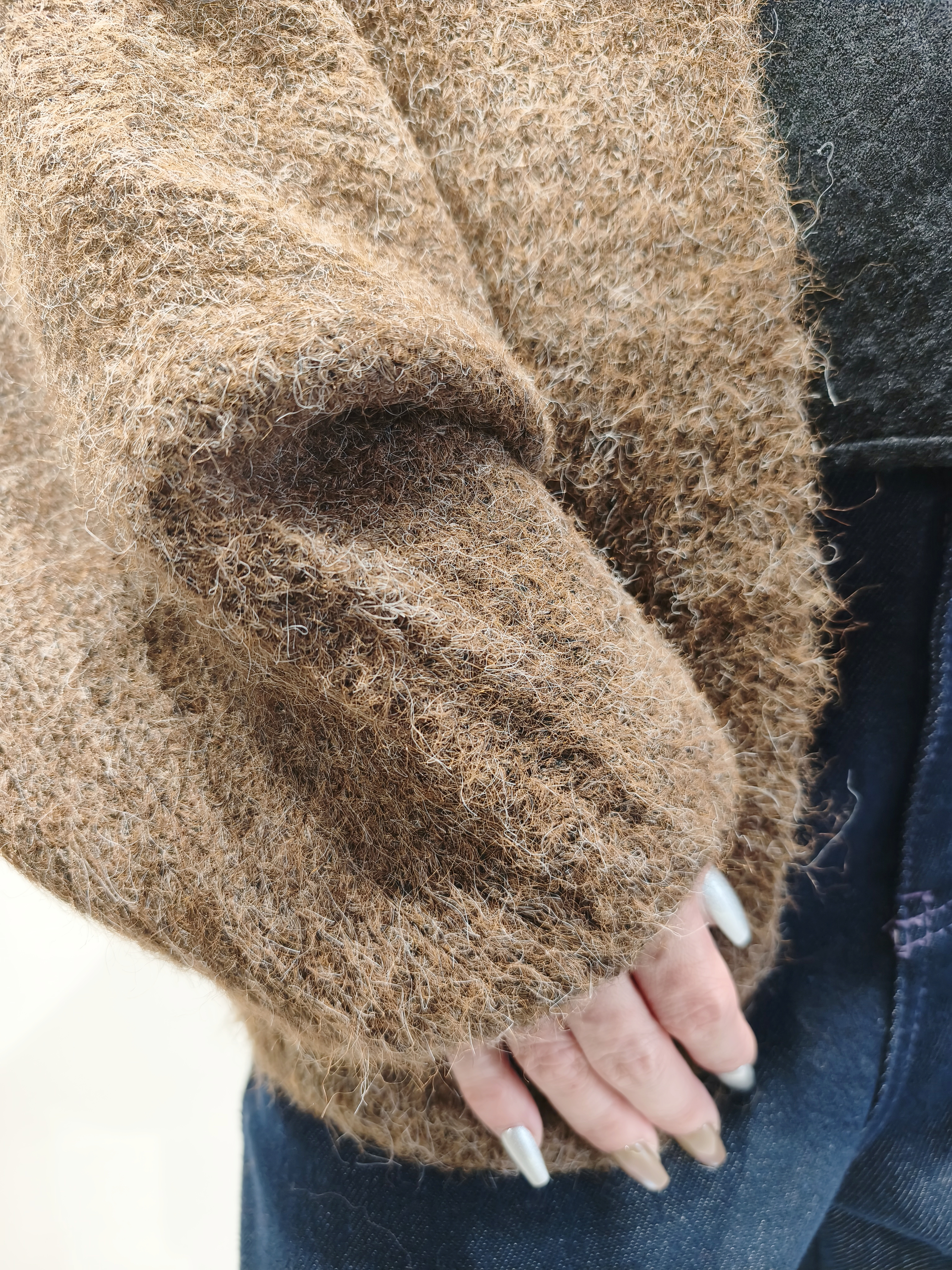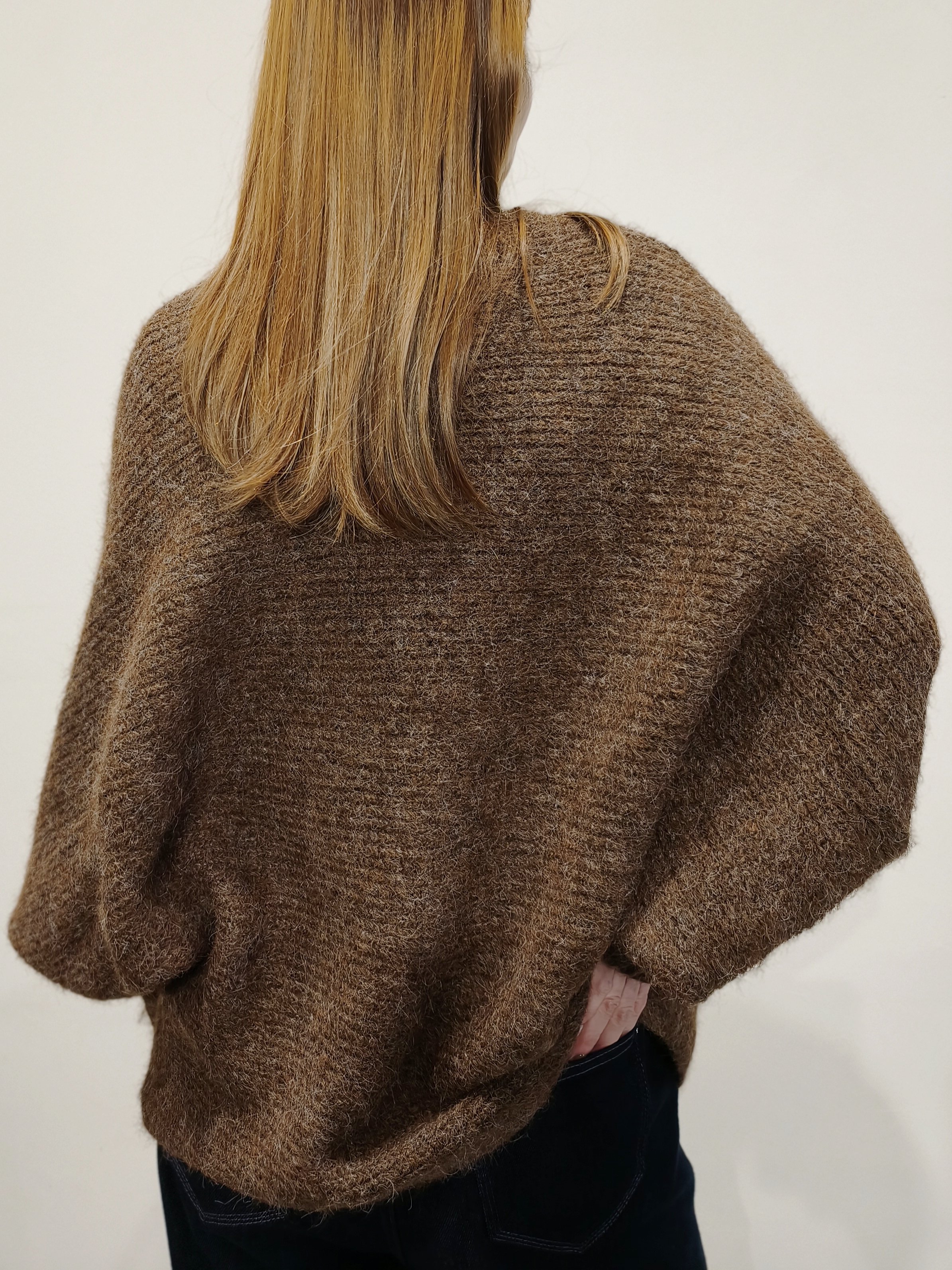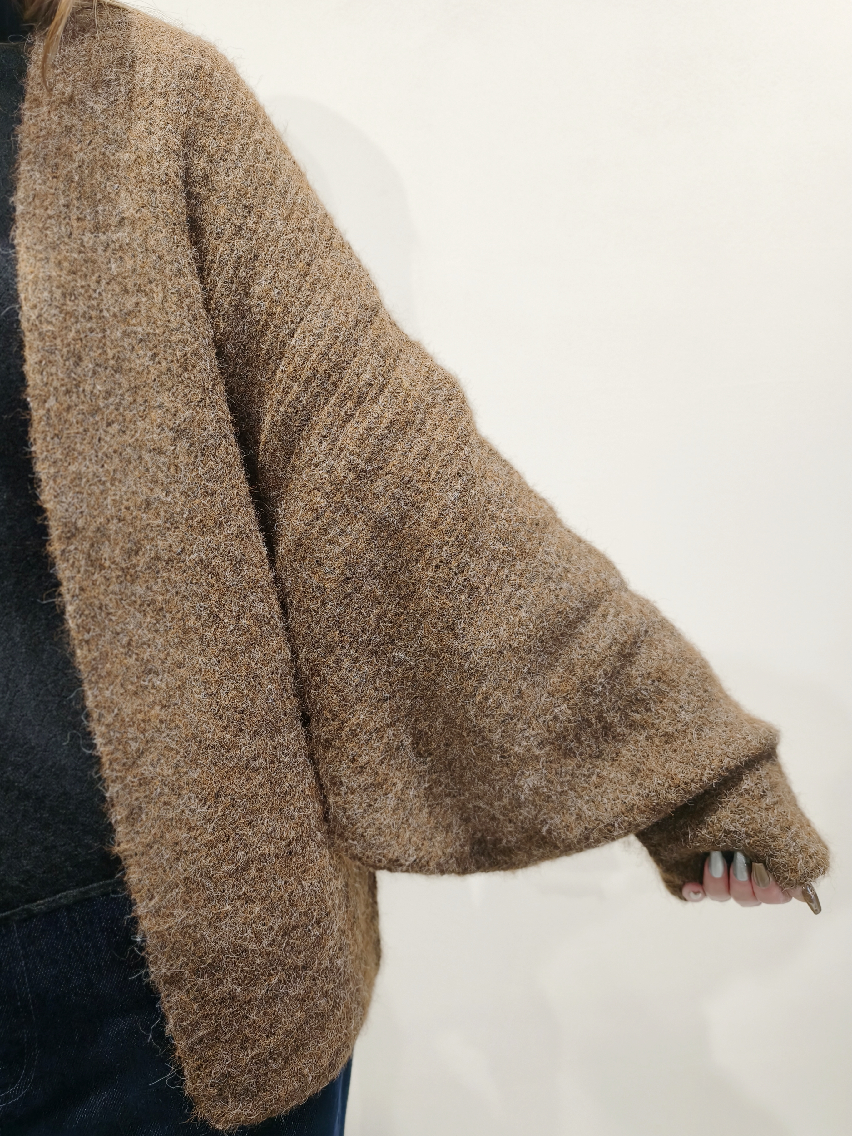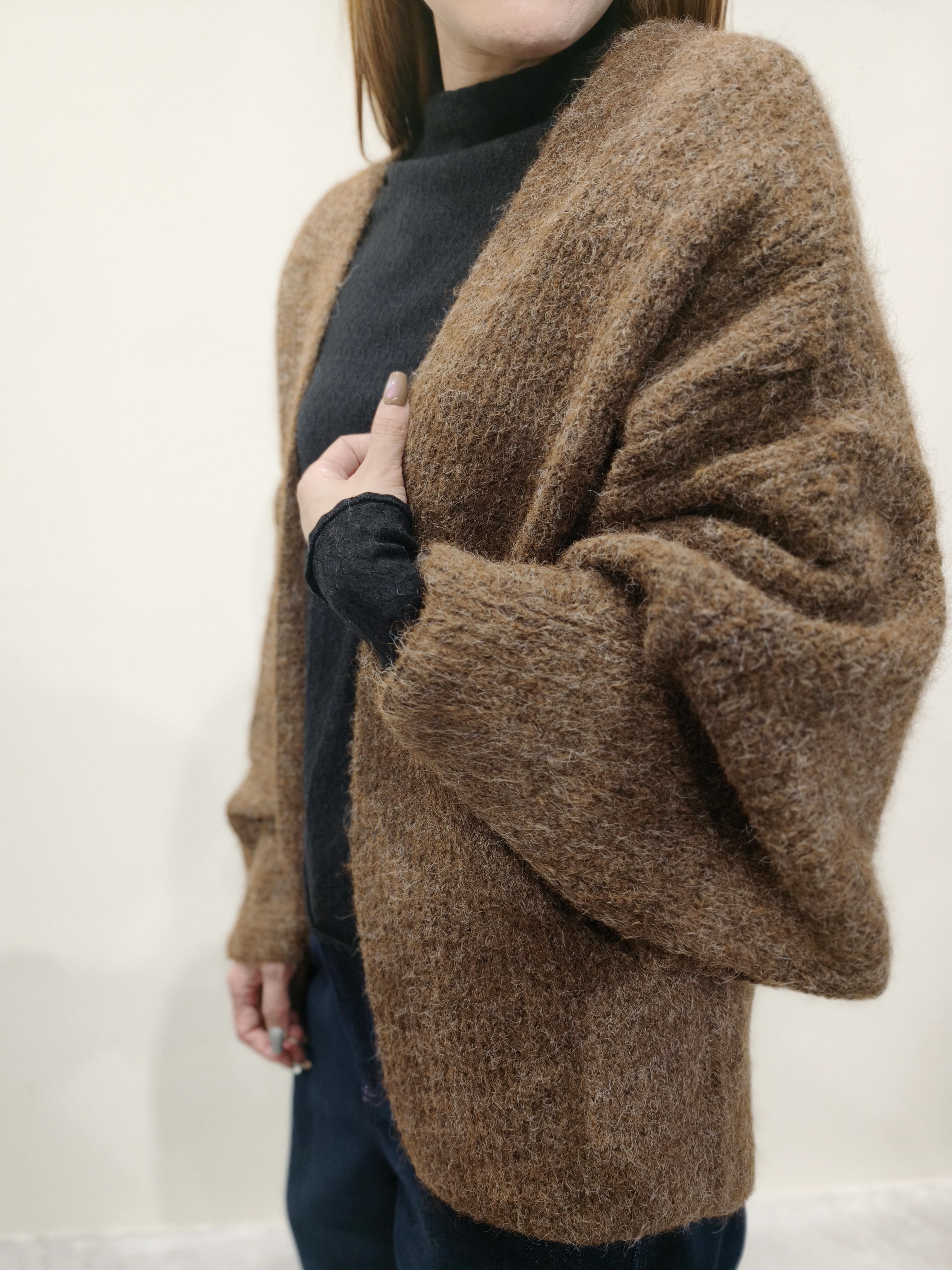 咖啡色蝙蝠袖毛衣外套