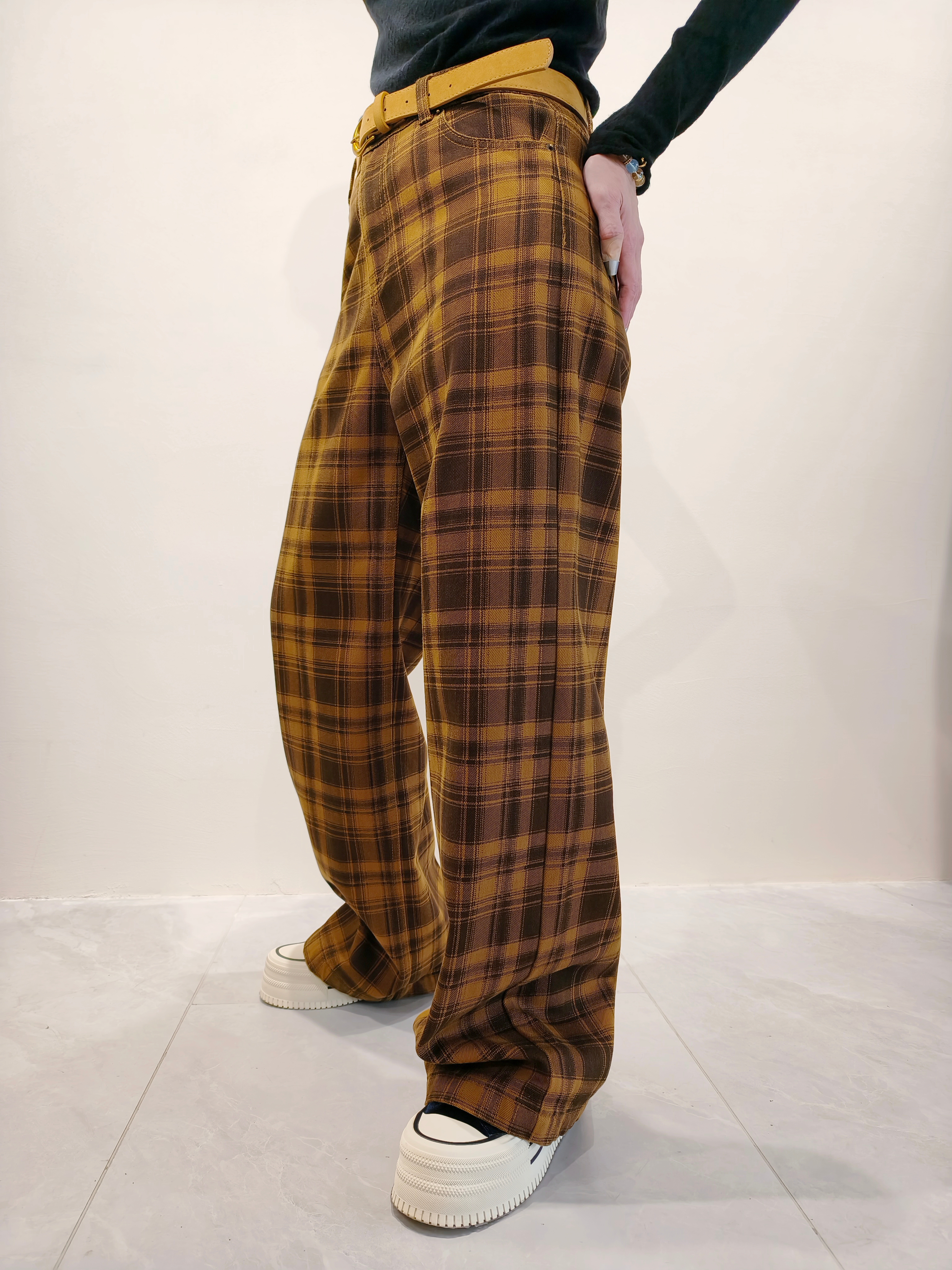 啡黃色格子褲