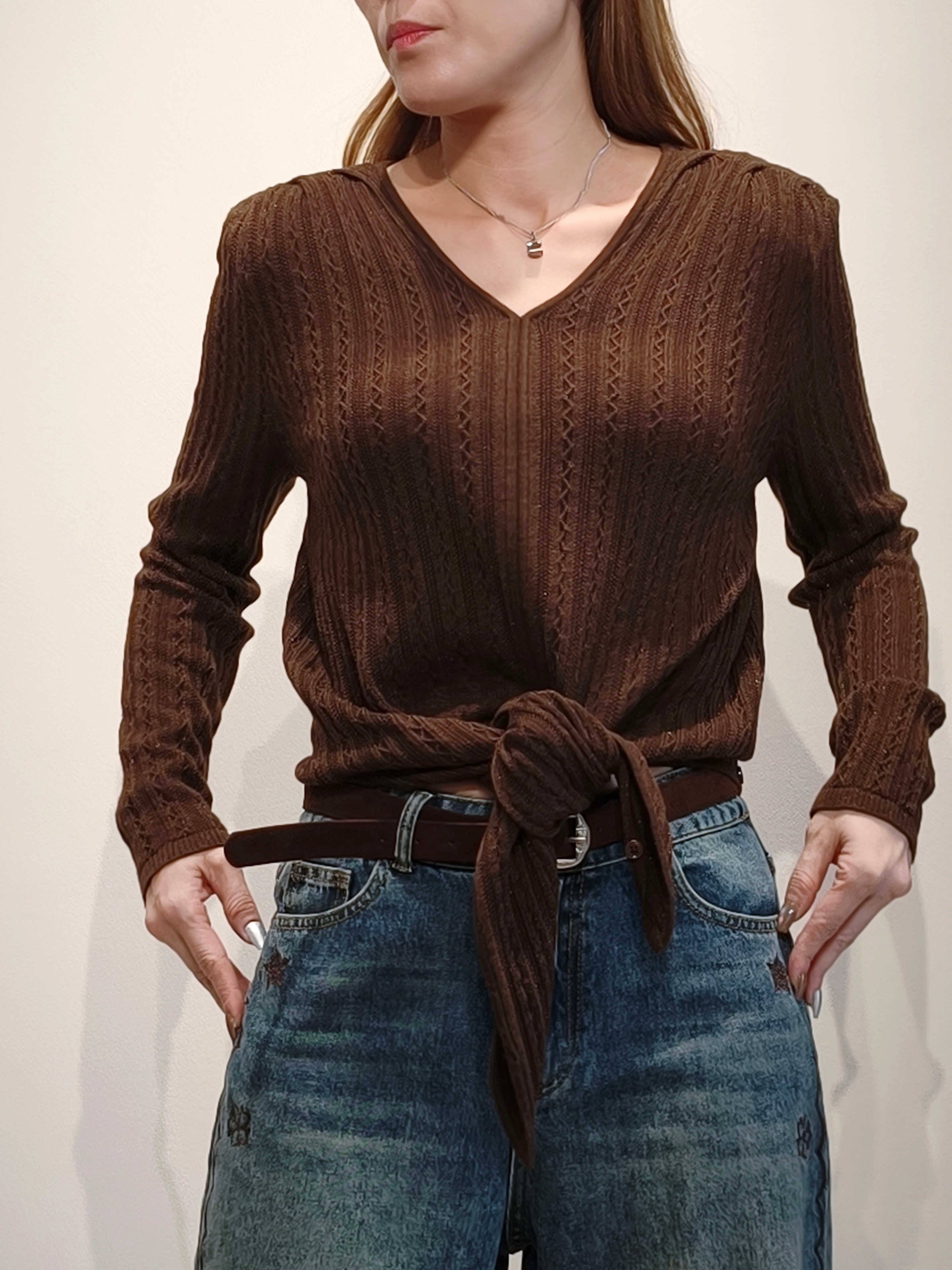 是針織綁帶上衣
