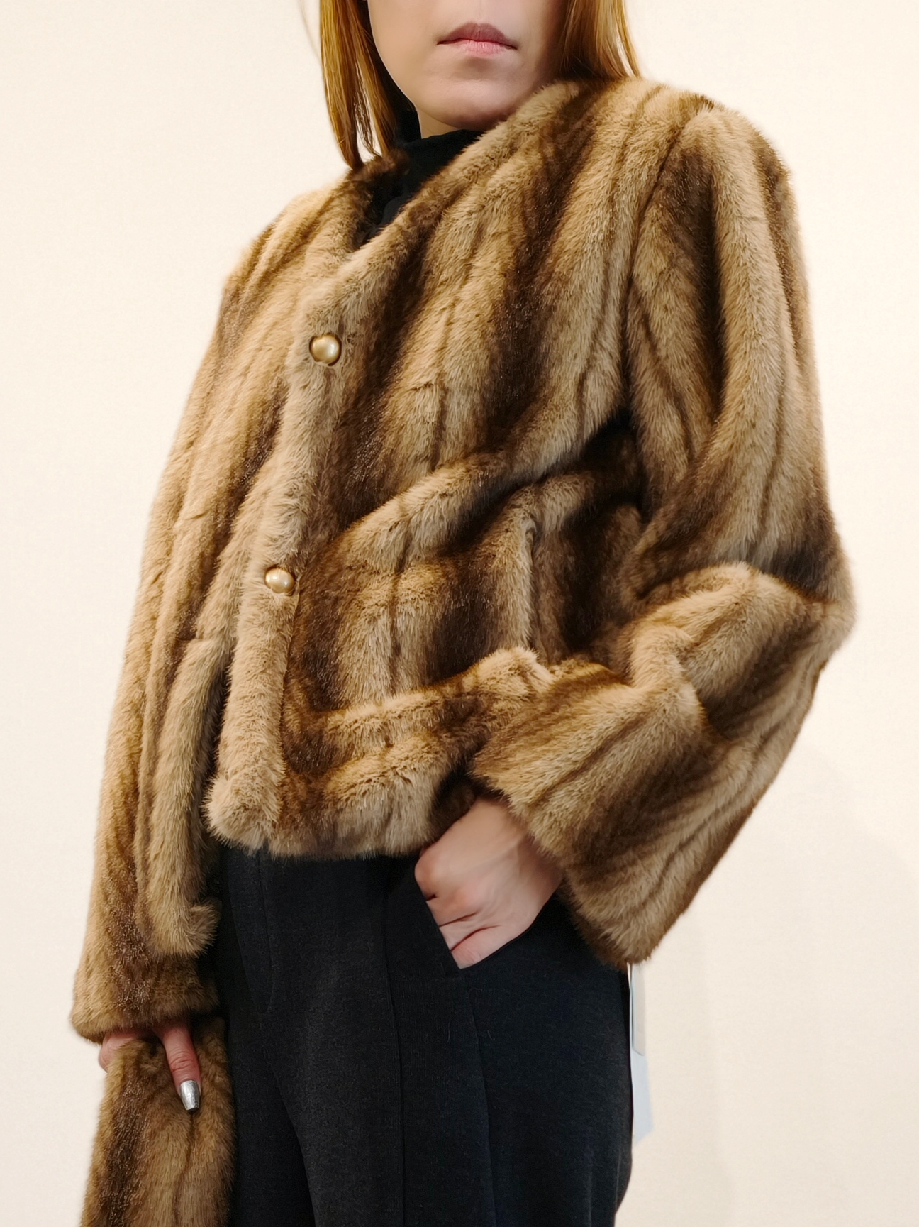 棕色毛毛褸連圍巾