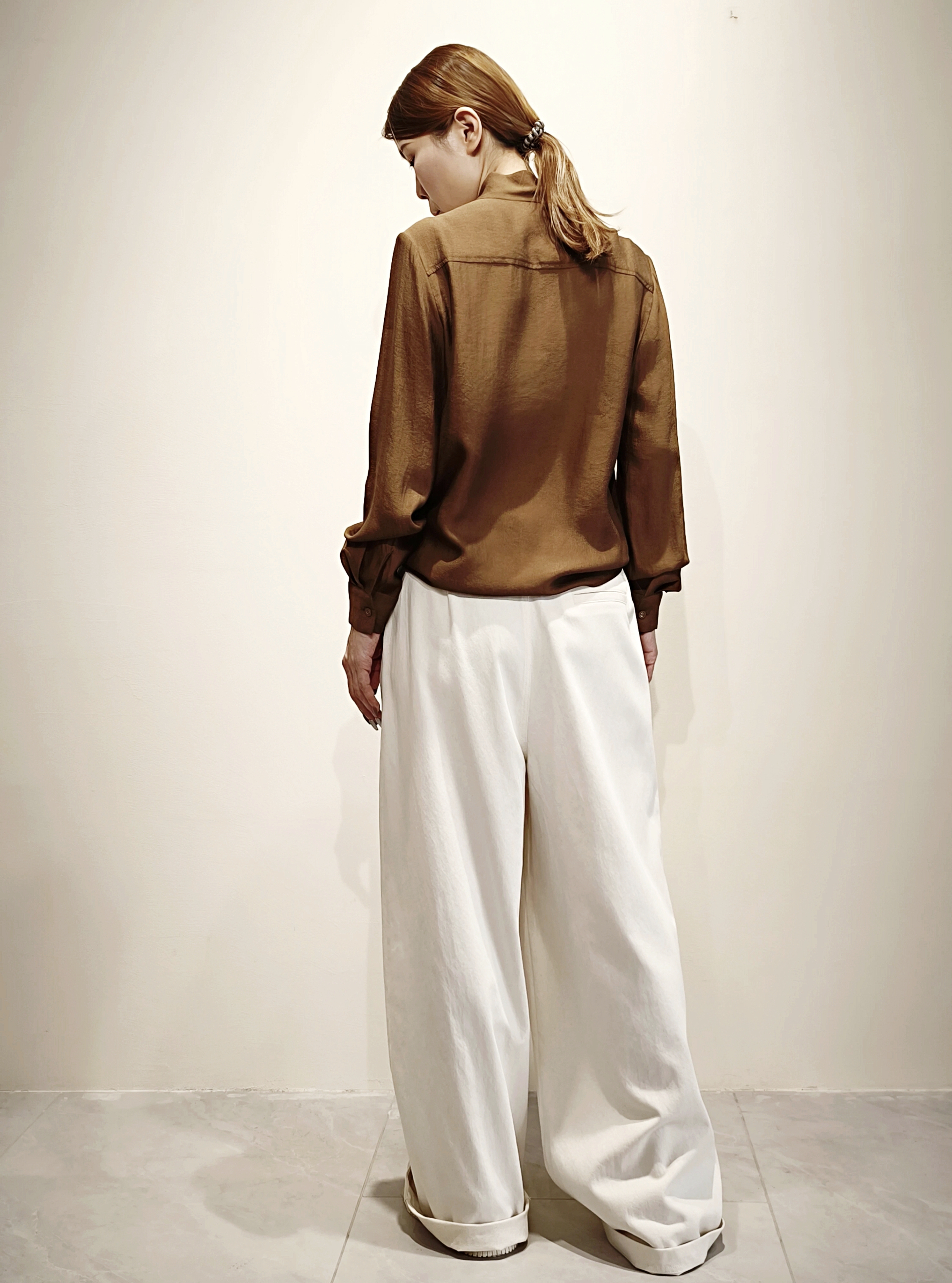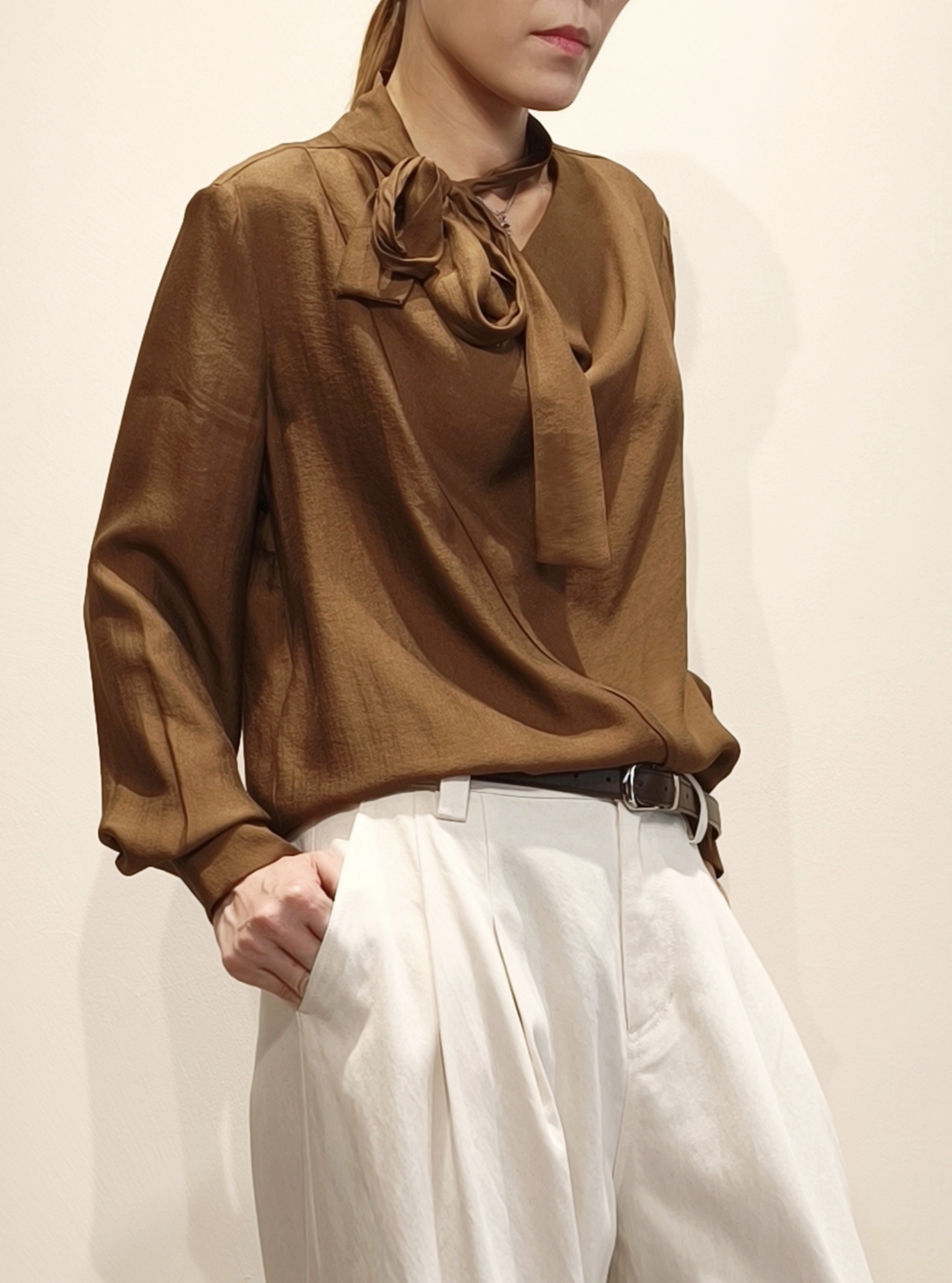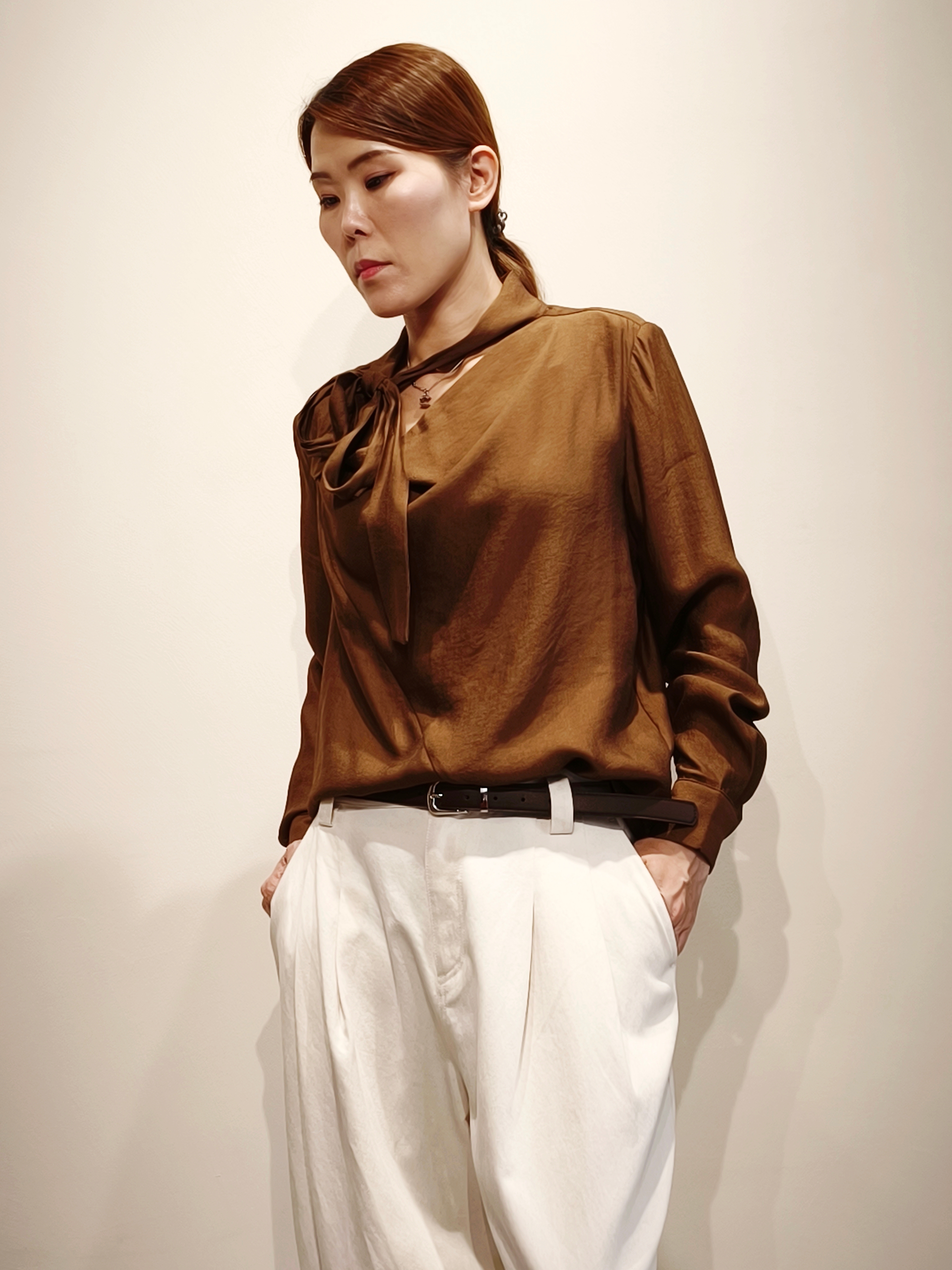 棕色繫帶領襯衫