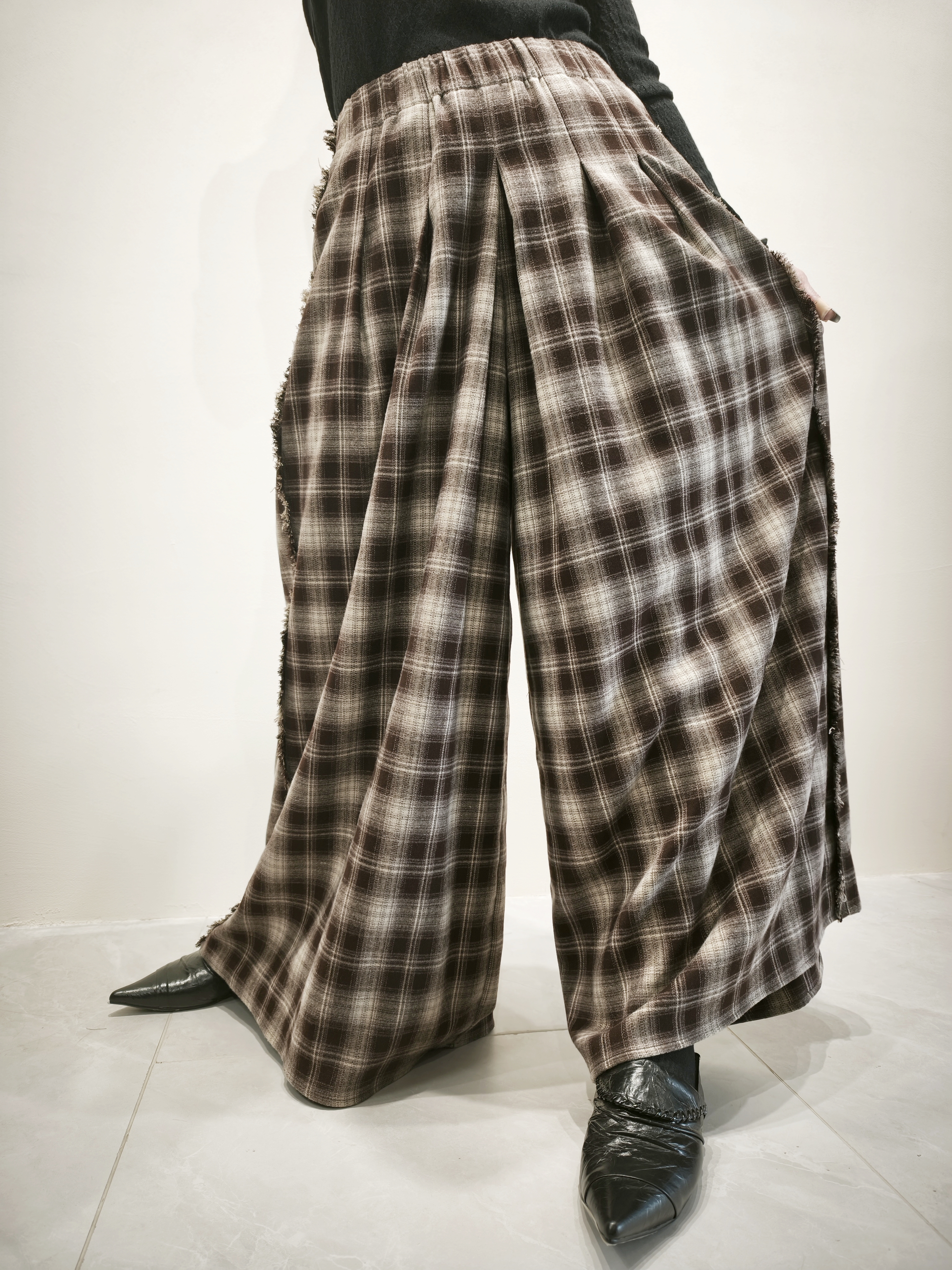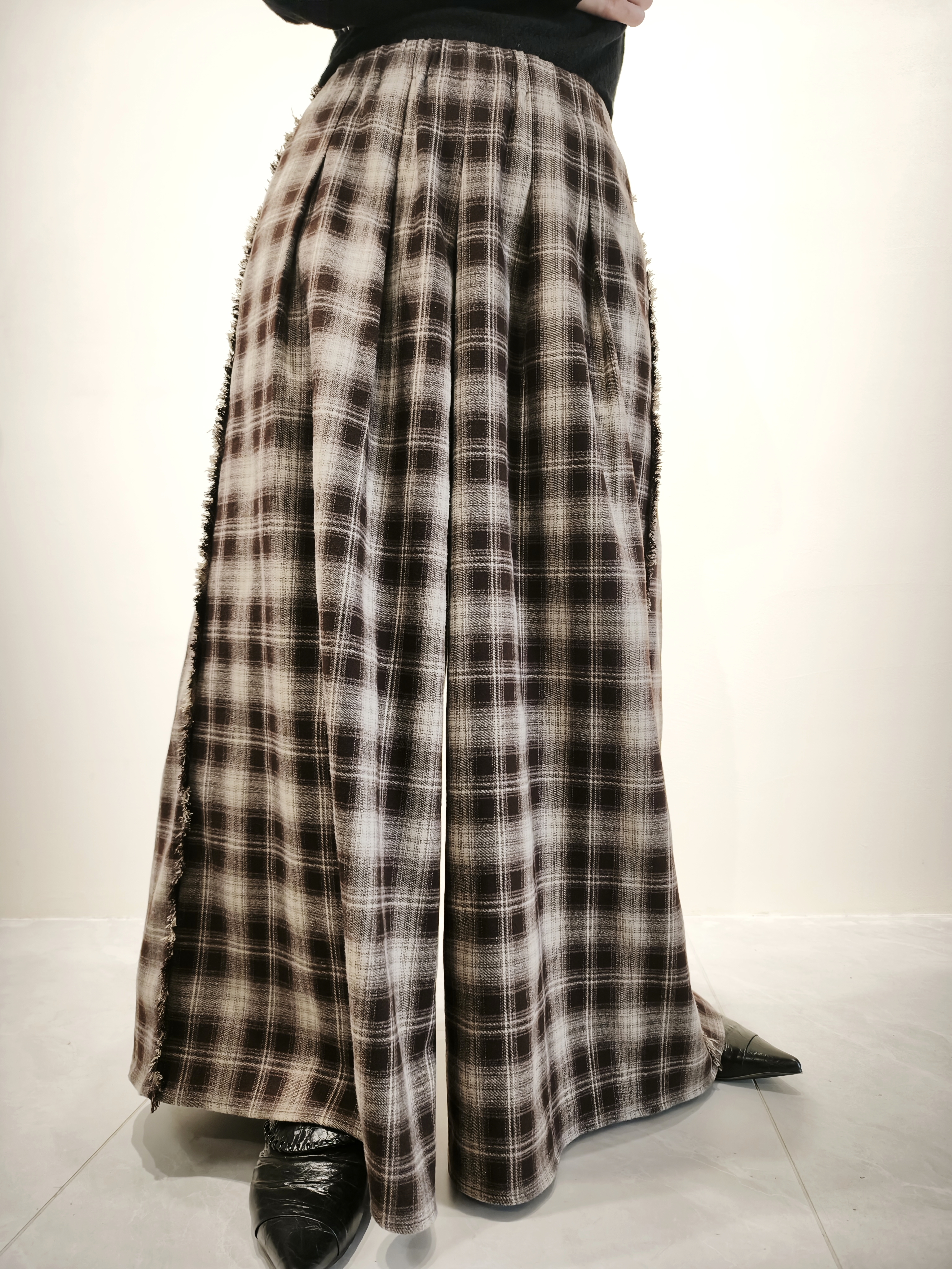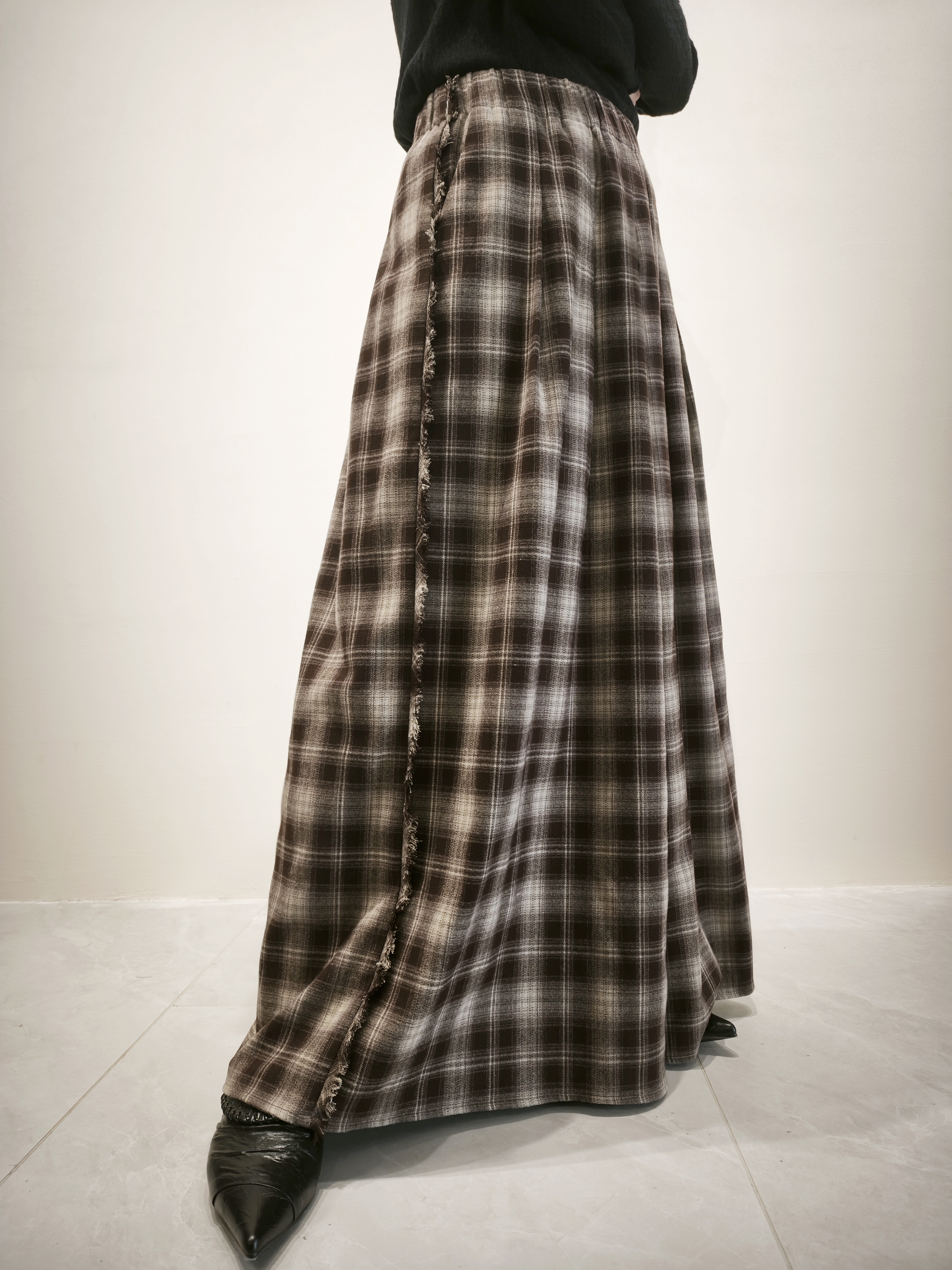 米啡格子簿絨裙褲