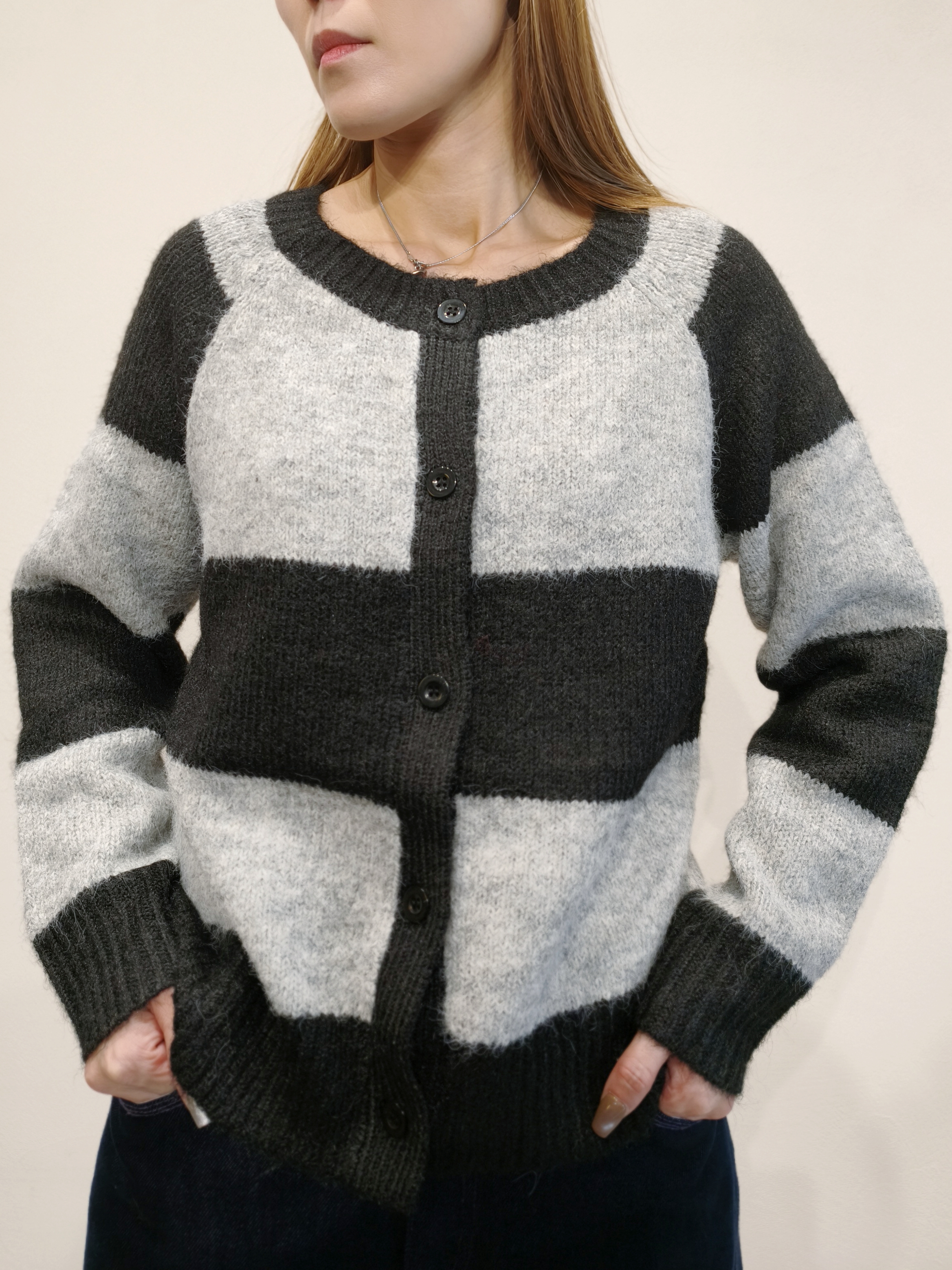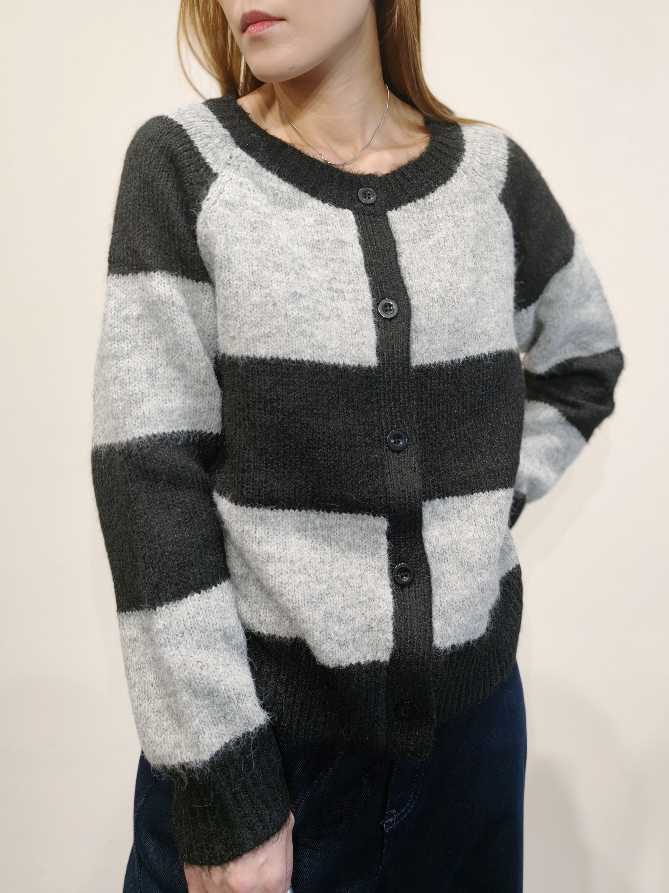 黑灰橫間毛衣外套