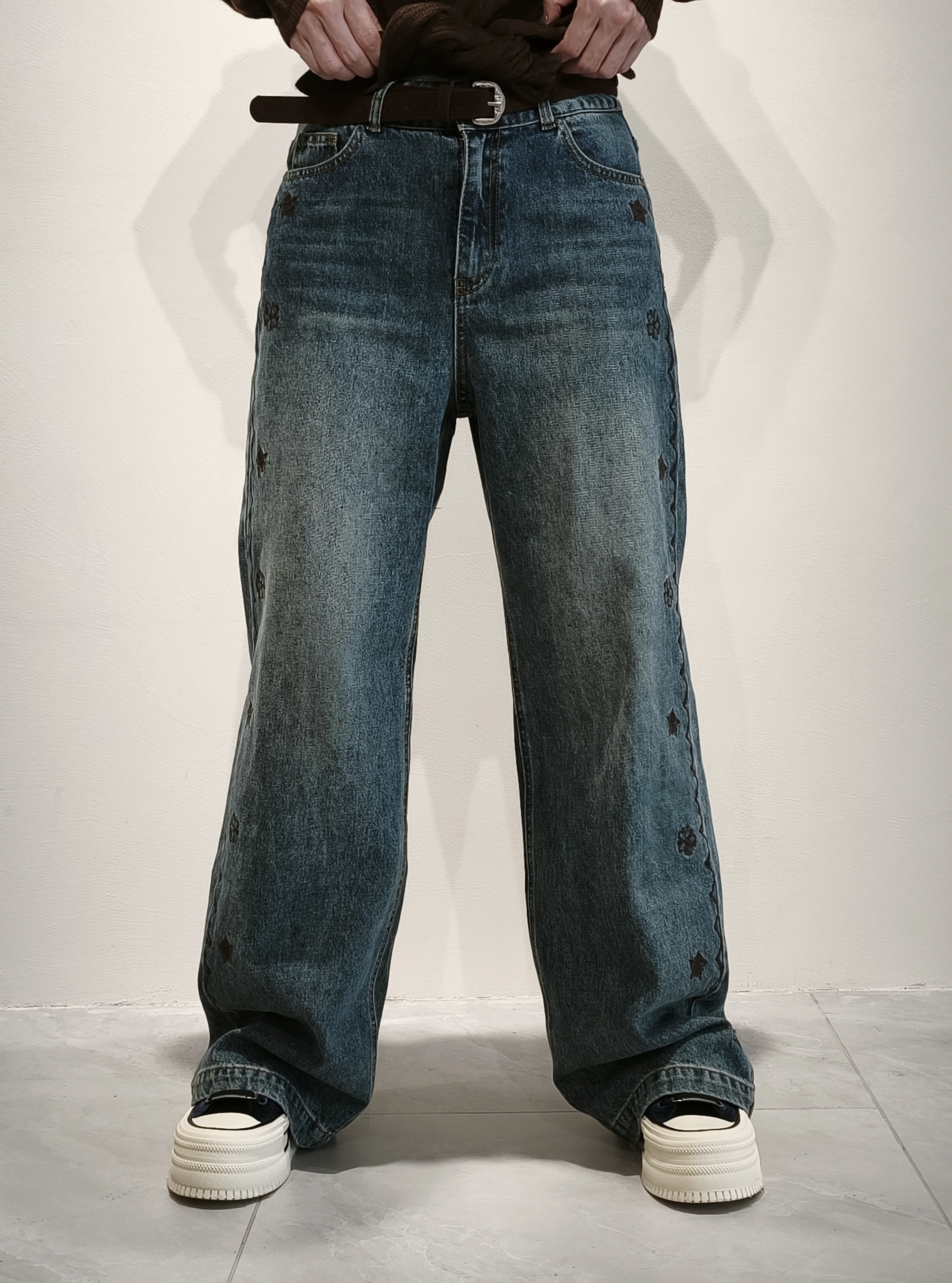 鏽花邊洗水牛仔褲