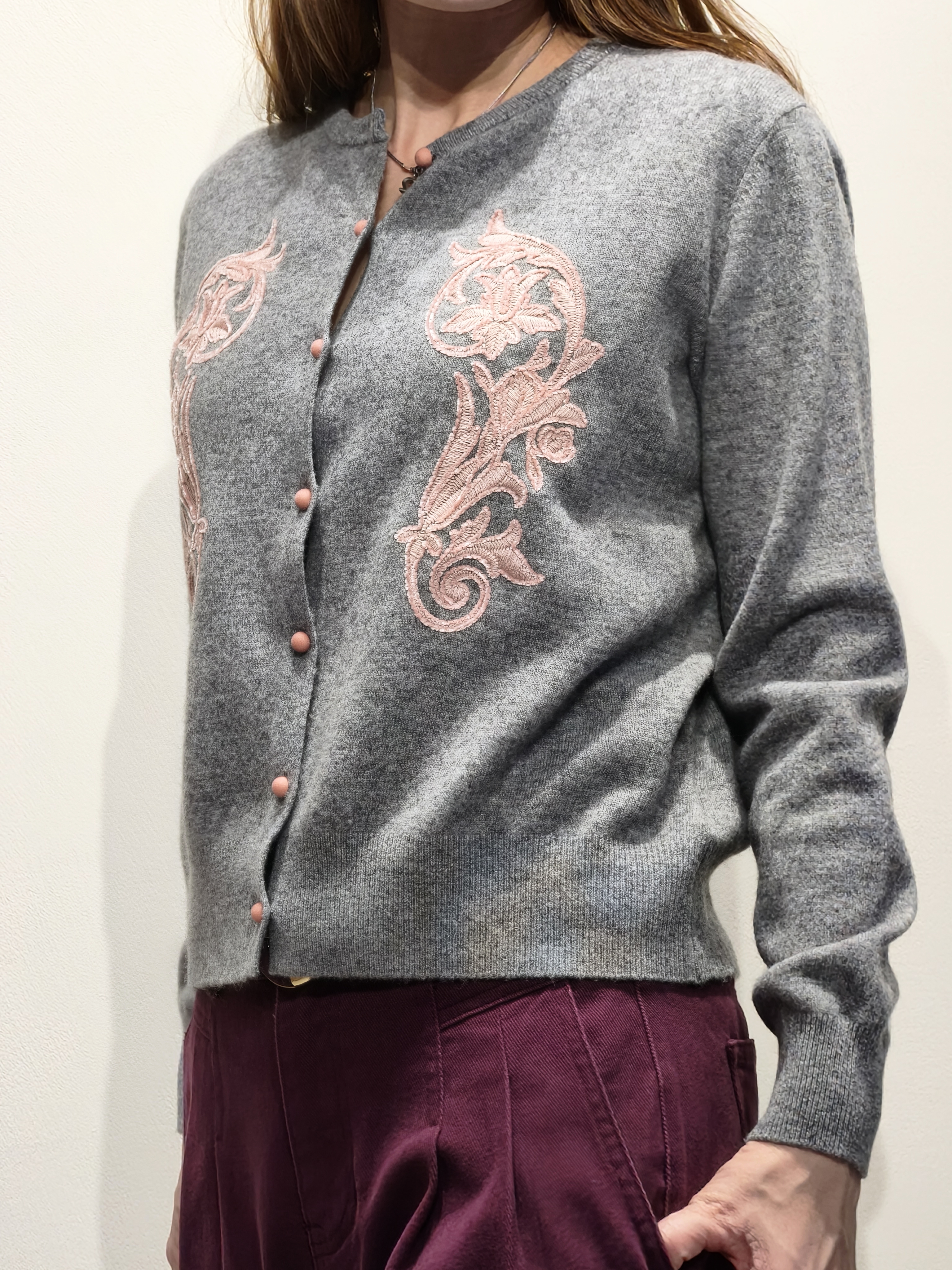 繡花灰色針織外套