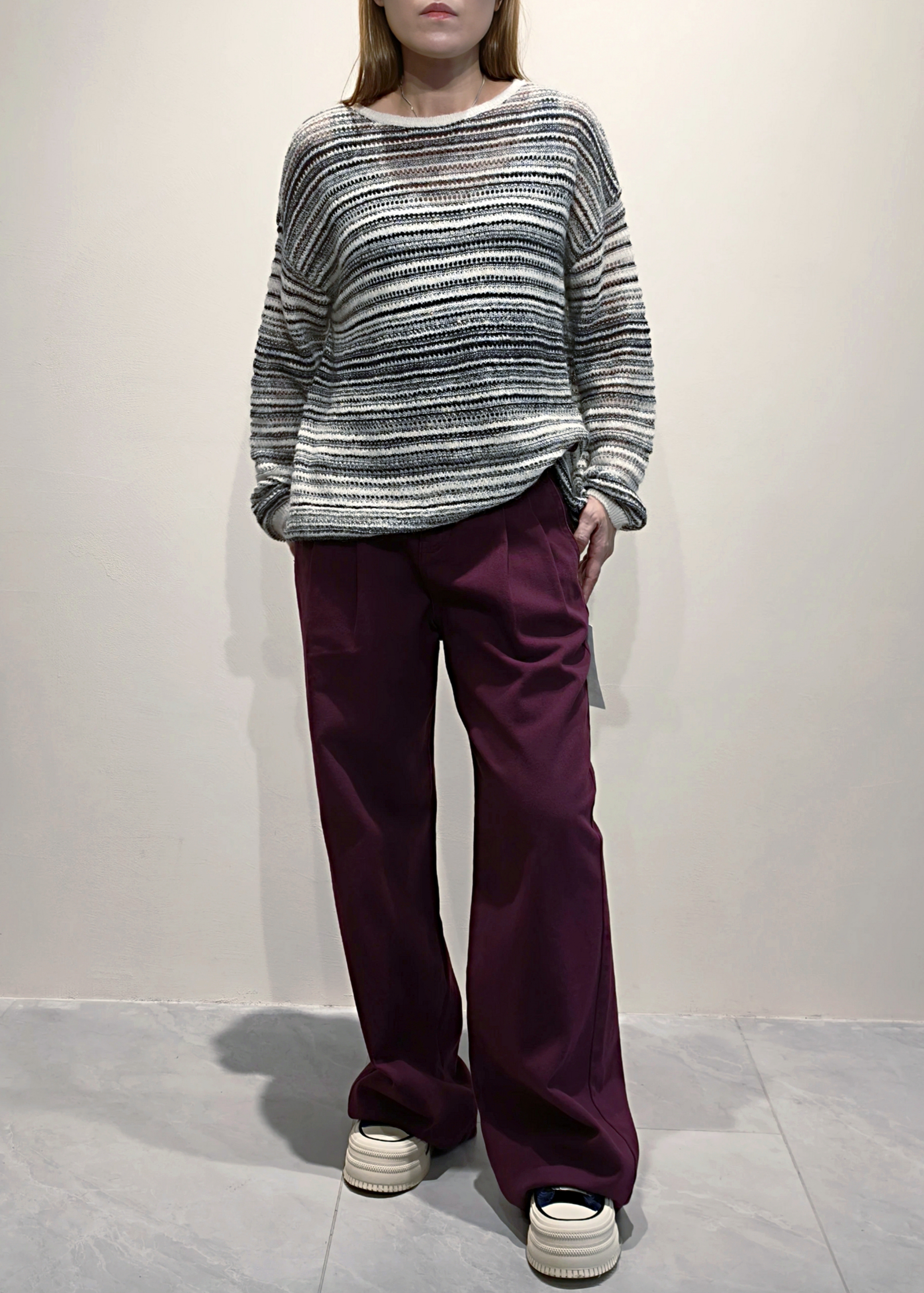 褸空條子針織上衣