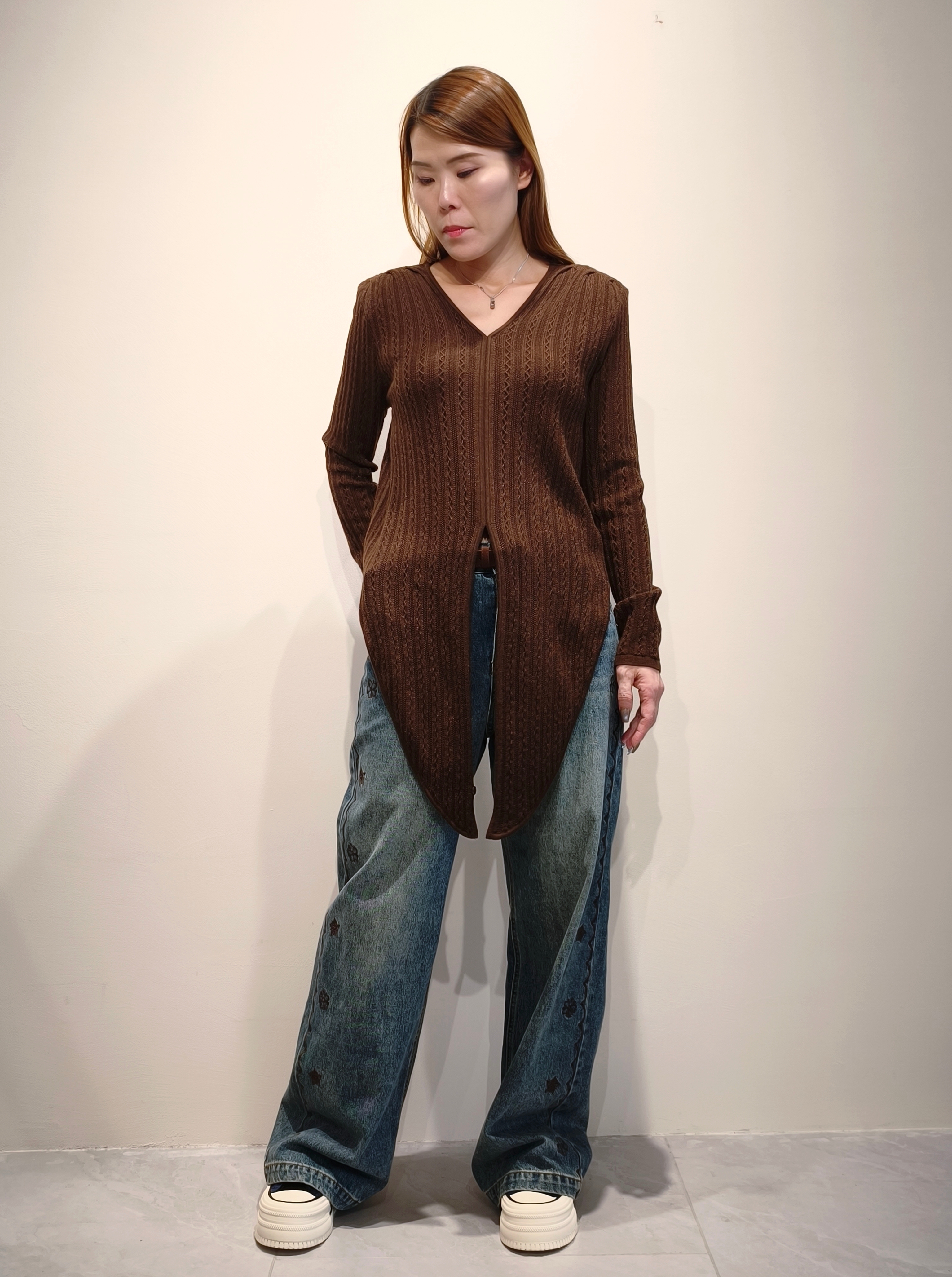 咖啡色金扣針織上衣